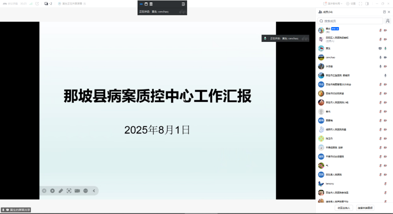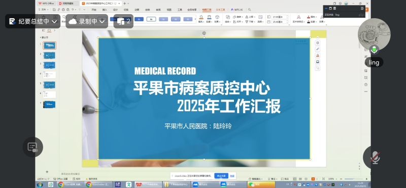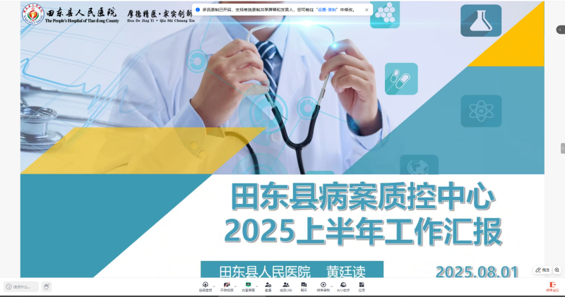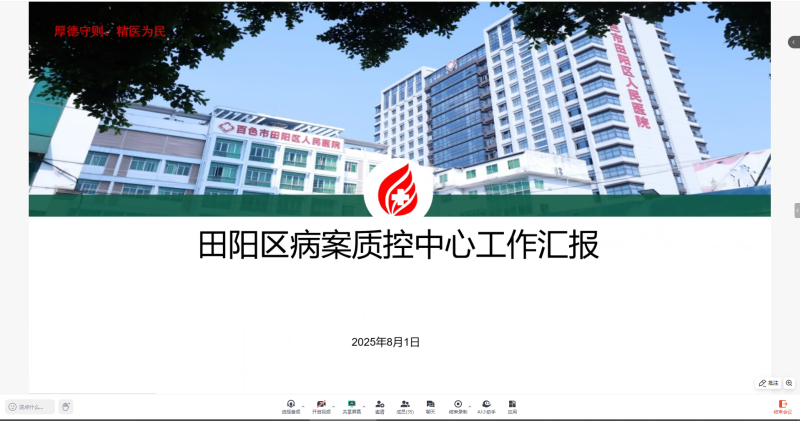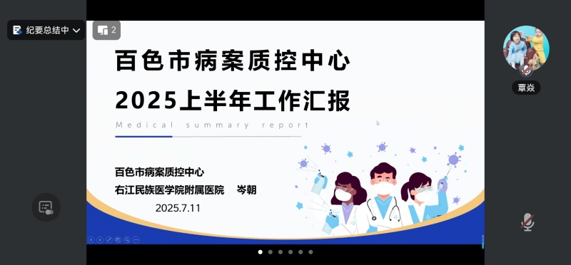 2025年8月1日,百色市病案管理医疗质量控制中心专业委员会通过腾讯会议平台召开了本年度第一次会议,会议旨在推进百色市病案管理工作,助力医院高质量发展。会议由百色市病案质控中心主任委员主持,副主任委员、委员等参会人员齐聚线上,共同探讨病案质控工作的发展方向。