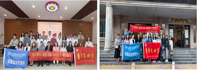 11月19日下午,病案信息管理科主任廖宁和青年文明号号长彭淑贤带领病案编码员、实习同学前往南宁市西乡塘区北湖安居社区卫生服务中心开展病案共建交流活动,旨在加强医联体单位之间的联系,提升基层医疗机构的病案管理水平。