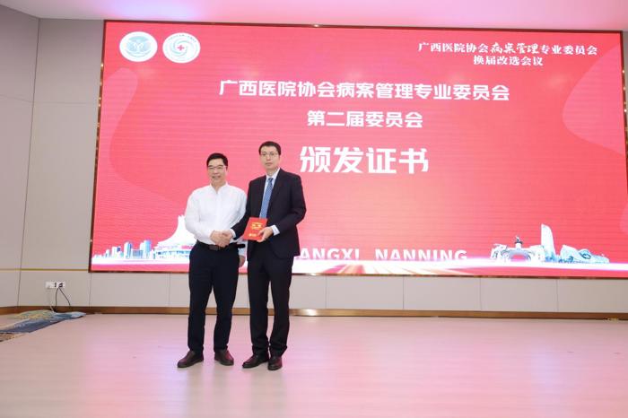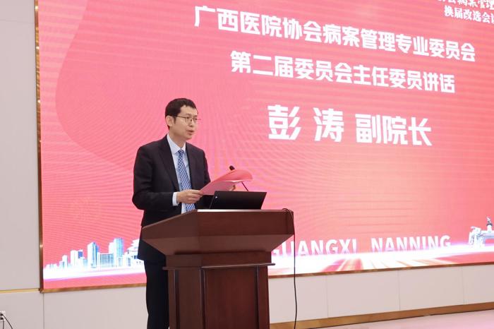 换届选举大会由广西医院协会秘书长叶少彬主持。经选举,我院副院长彭涛当选广西医院协会病案管理专业委员会第二届主任委员。