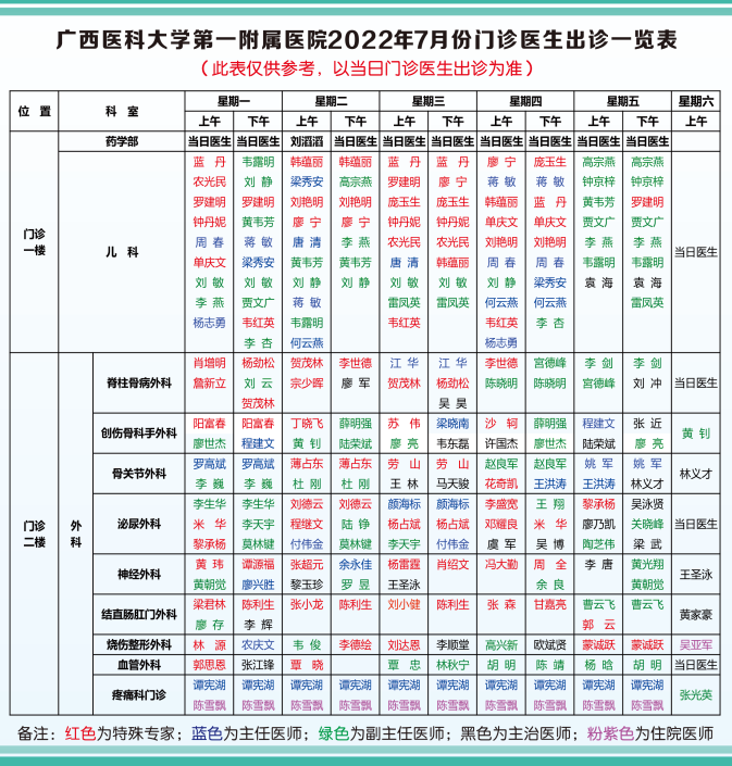 1.药学部、儿科、外科(脊柱骨病外科、创伤骨科手外科、骨关节外科、泌尿外科、神经外科、结直肠肛门外科、烧伤整形外科、血管外科、疼痛科)
