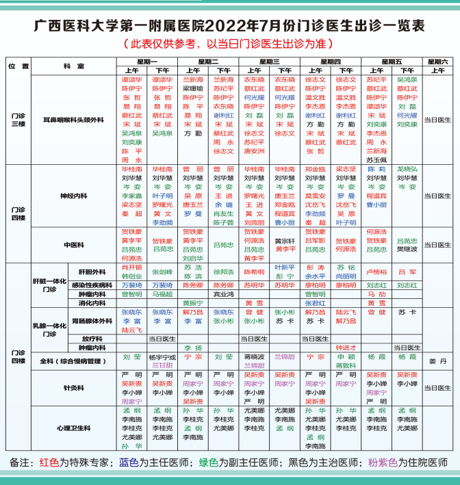 6.产前诊断与遗传病诊断科、整形美容外科、广西生殖医学研究中心、血液净化部、口腔科、视光部、预防保健科、高压氧科、感染性疾病科、核医学科、超声介入门诊