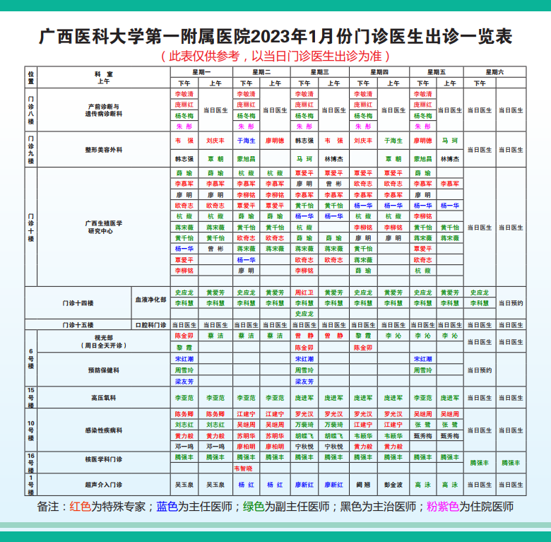 具体出诊医师以当天可挂号医师为准