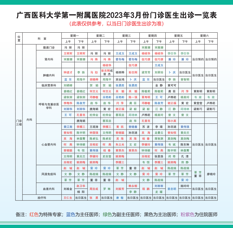 3.内科(腹透门诊、肾内科、肿瘤内科、临床营养科、呼吸与危重症医学科、心血管内科、风湿免疫科、血液内科)、放疗科