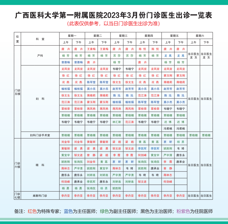 7.产前诊断与遗传病诊断科、整形美容外科、广西生殖医学研究中心、血液净化部、口腔科、视光部、预防保健科、高压氧科、感染性疾病科、核医学科、超声介入门诊