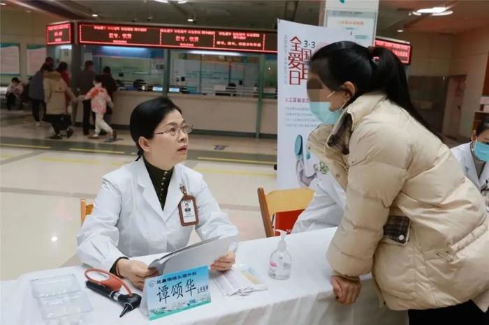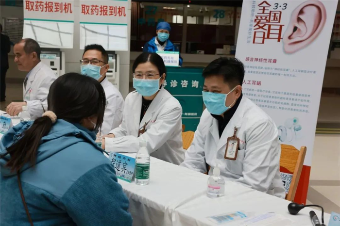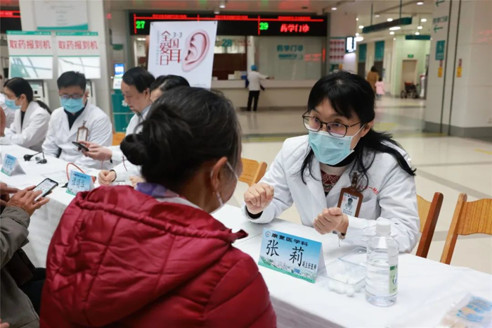 3月2日上午,我院耳鼻咽喉头颈外科联合产前诊断与遗传病诊断科、神经内科、康复医学科在门诊大楼一楼大厅举行“全国爱耳日”义诊活动,为广大患者进行耳聋、耳鸣、眩晕、中耳炎等耳部相关疾病的相关预防、筛查、治疗、康复等全过程的专业指导咨询,并为部分患者提供了免费听力检测、免费耳聋基因检测。