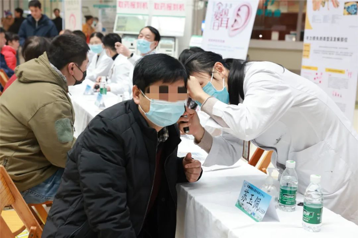 义诊现场,耳鼻咽喉头颈外科唐安洲教授、谭颂华主任医师、方勤副主任医师、苏玉佩主治医师为前来咨询的患者们进行免费的耳道检查,耐心地为他们解答关于听力保健的疑问。产前诊断与遗传病诊断科庞丽红主任医师,神经内科程道宾主任医师,康复医学科张莉副主任医师为患者提供耳聋遗传及产前诊断、听力康复等专业知识的咨询服务。护理团队为患者免费测血压,并通过展示发放宣传手册等方式科普听力保护知识。活动持续近2小时,吸引了广大患者参加,获得大家的一致好评。