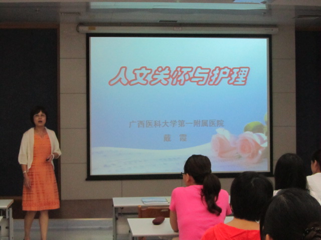 活动分为二个部分进行。首先,戴霞科护士长做了“人文关怀与护理”的专题讲座,讲座内容围绕人文关怀在护理工作中的细微体现,丰富而生动,通俗易懂的事例使“爱在我心中”在护理工作中得到充分体现,全体同学表示深受启发和感动。