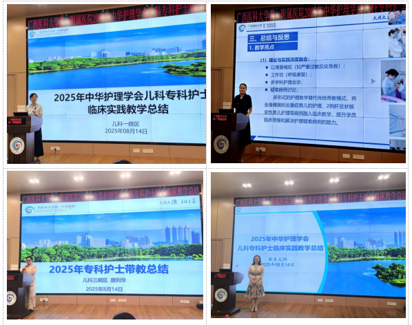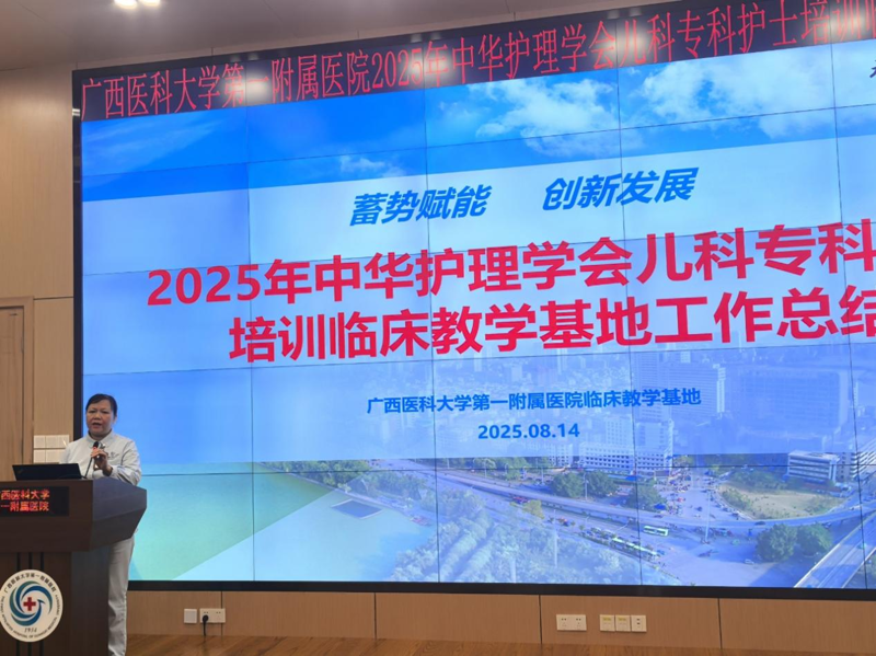 2025年8月14日下午,我院儿科在住院部23楼学术厅召开了“2025年中华护理学会儿科专科护士培训临床教学工作总结会”。基地负责人、护理部副主任韦琴,基地班主任、儿科科护士长李艳青、各病区护士长、带教老师以及全体专科护士学员参会。会议由基地总带教杨荔婷主持。