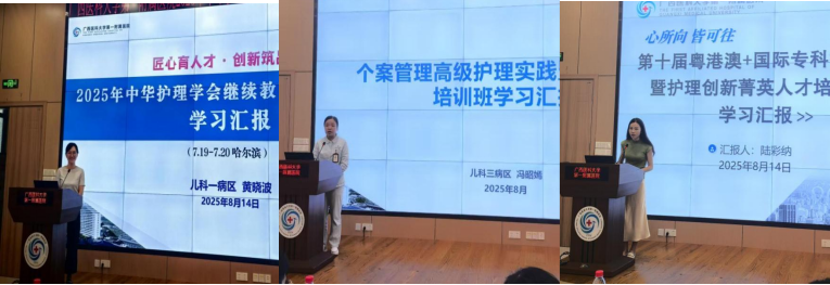 会上,护士长黄晓波、主管护师冯昭嫣、陆彩纳分别进行专科护士外出参会学习汇报,分享了先进理念与实践经验。