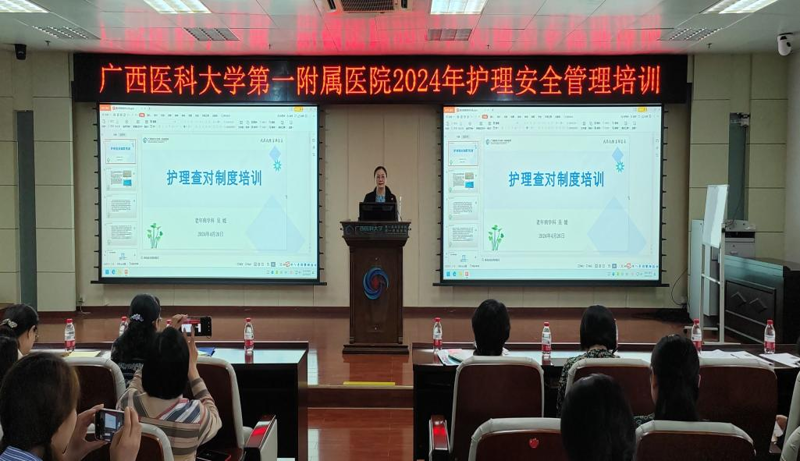 4月26日下午,我院护理部在临床教学大楼二楼多功能厅举办“2024年4月护理安全管理专项培训”。护理部主任杨丽、副主任韦琴、曾国艳、凌瑛以及全院护士长共约120人参加,会议由护理部主任杨丽主持。