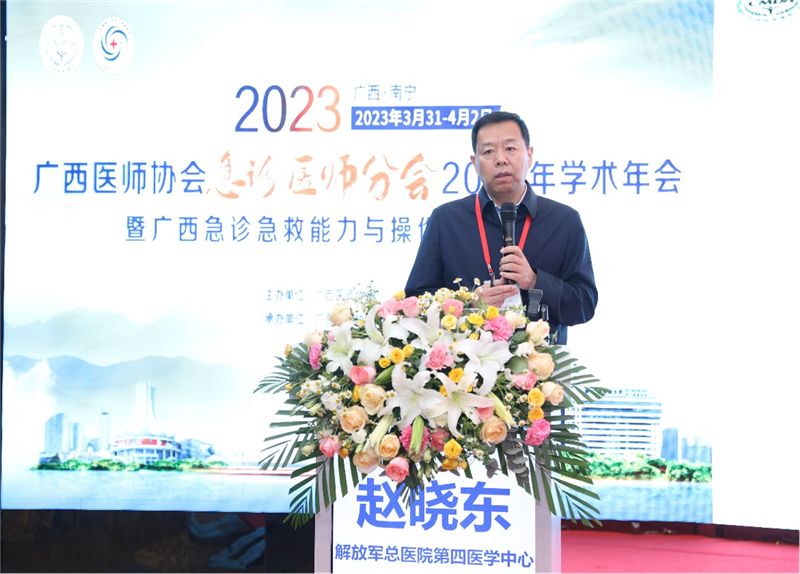 赵晓东代表中国医师协会急诊医师分会对广西医师协会急诊医师分第二届委员会的成立表示热烈的祝贺,并对广西医师协会急诊医师分会的工作提出几点建议:一要严格遵守医师协会章程、学术管理及财务管理等管理办法,充分发挥学会的优势作用;二要加强委员团结合作,大力开展学术交流,促进急诊分会事业更好更快发展,更好地为广大病患服务;三要积极宣传医学知识,开展健康宣教,提高人民群众的防病水平,希望广西的急诊专家们不断提高医学技术水平,为助推健康中国建设、促进医学研究、护佑群众健康而努力奋斗。