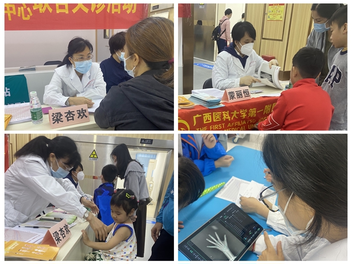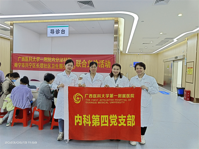 5月13日,我院内科第四党支部组织内分泌科党员、群众等医护人员,到南宁市兴宁区长堽社区卫生服务中心开展儿童生长发育义诊活动。