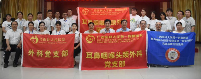 5月20日,我院耳鼻咽喉头颈外科党支部带领团支部联合马山县人民医院外科党支部,开展主题教育党建共建活动。