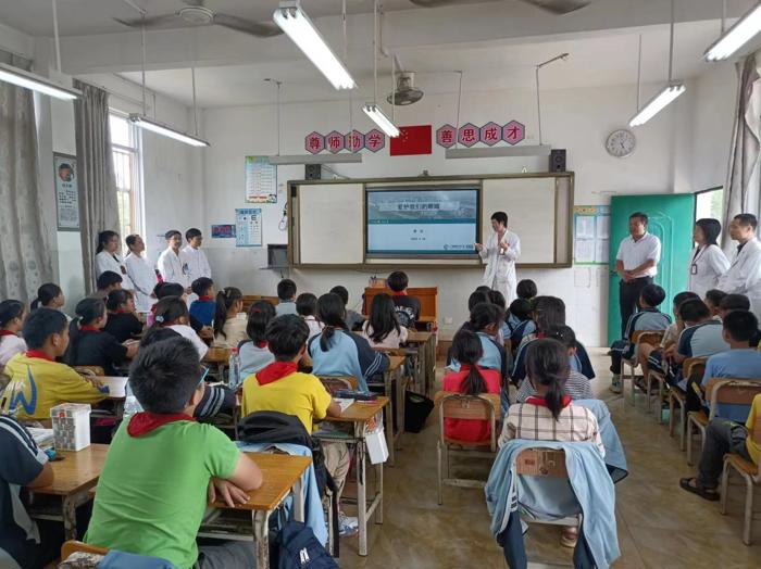 据了解,新平小学是村里唯一的小学,现有在校生160多人,其中近60名学生因上学路途遥远、父母亲不在身边等原因在学校寄宿,学校师资力量薄弱,鲜有“眼卫生”等拓展课程。我院眼科党支部书记、科主任黄敏丽教授得知后,第一时间决定组织支部医护人员到新平小学为留守儿童们送关爱送健康,深受百济镇新平村党总支部和新平小学师生们的欢迎。
