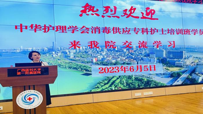 6月5日,我院在住院部23楼学术厅举行2023年中华护理学会消毒供应专科护士临床实践培训班开班式。护理部主任杨丽、副主任韦琴、曾国艳、凌瑛,中心手术室护士长陈云超、基地负责人岑颖、总带教欧春红、谭理宁,部分带教老师及区内外19名学员参加。