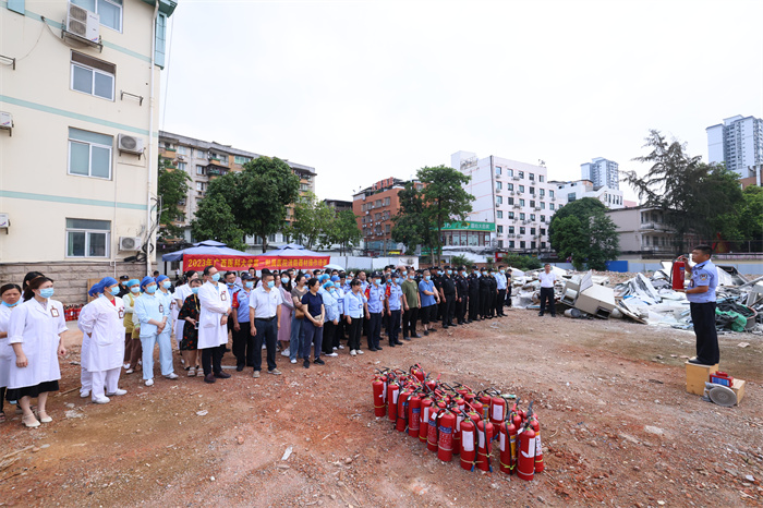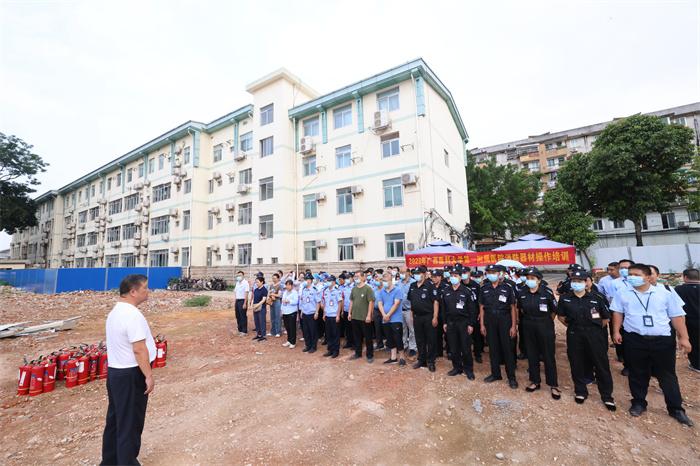 今年6月是第22个全国“安全生产月”。6月15日,我院保卫科组织全院职工、外包单位人员在宿舍五区建筑工地开展“安全生产月”消防器材操作培训。