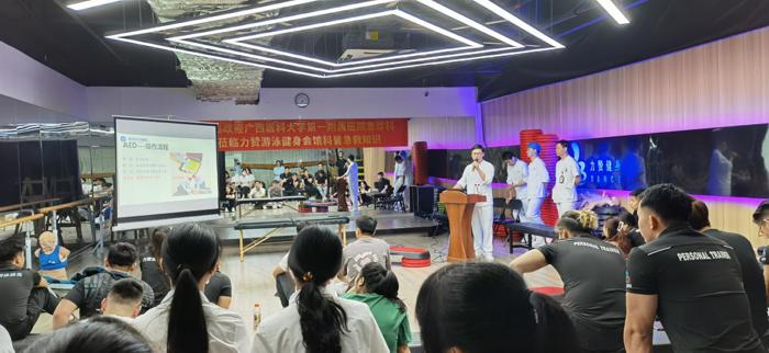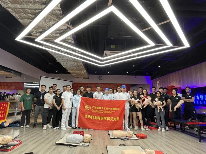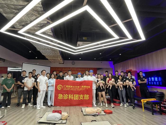 6月14日下午,我院急诊科全科医学科党支部带领团支部到力赞游泳健身馆开展急救科普培训活动。