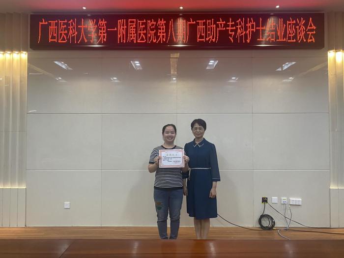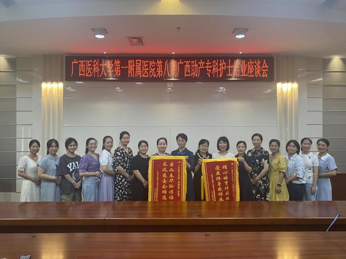 近日,我院在住院部裙楼二楼小学术厅举办广西第八期助产专科护士临床实践培训结业座谈会。护理部主任杨丽、副主任韦琴,妇科一病区护士长余丽、产科临床实践基地负责人覃桂荣、副护士长饶倩羽、带教老师及全体广西第八期助产专科护士培训班学员参加,覃桂荣主持。