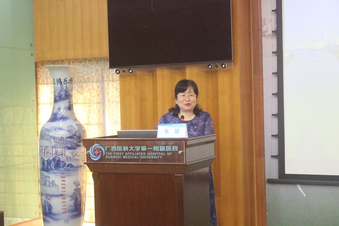杨丽欢迎学员们到来,希望学员们通过培训不断夯实急诊急救相关理论基础,提升急诊急救知识和技能,争取早日成为一名优秀的急诊急救专科护士,为患者提供更优质高效的急诊急救专科护理服务。韦琴介绍了医院发展概况、护理学科建设、人才培养、专科特色等内容,强调了我院专科护士临床实践基地相关制度和管理要求,希望学员遵守医院的规章制度,如期完成培训,学以致用促发展。
