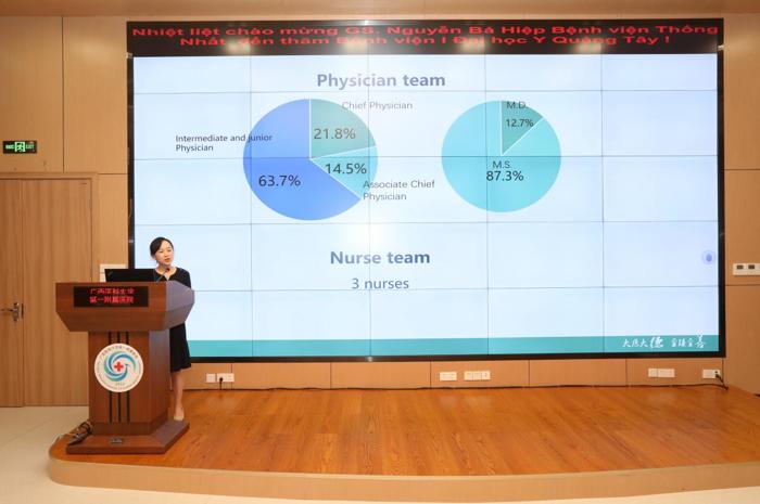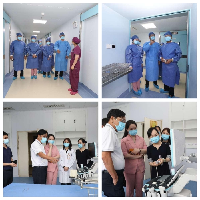 阮伯协对我院的热情接待表示感谢,并简要介绍了越南统一医院的基本情况、功能定位和发展方向,并实地参观我院机器人腔镜手术中心和超声医学科。