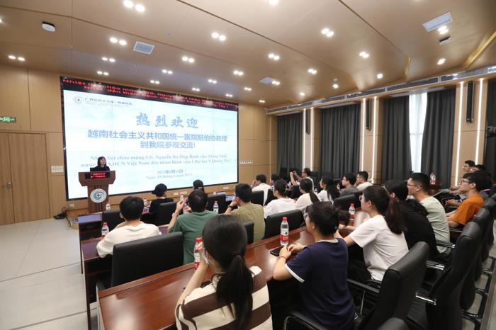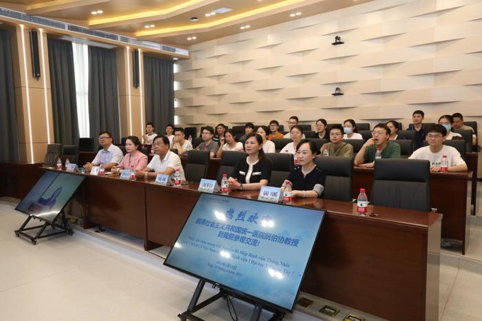 6月19日上午,越南统一医院泌尿外科主任阮伯协教授到我院参观交流。我院超声医学科主任杨红,高泳教授,泌尿外科李天宇主任医师、梁伟霞护士长及国际合作和对外交流部代表、课题组研究生代表等参加。