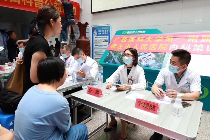崇左市人民医院党委副书记、院长张杰民出席活动,并对我院专家组的到来表示热烈欢迎。参与活动的专家团队由我院神经内科党支部书记、广西抗癫痫协会会长吴原教授带领,神经内科余璐教授、赵翠松主任护师、马美刚副主任医师、钱凯住院医师等9人组成。我院专家团队与崇左市人民医院医院党委委员、神经内科主任黄坚毅等多名当地医院的专家共同开展联合义诊,为当地群众及患者提供了义诊、教学查房、脑电图操作示范、学术讲座和科普咨询等服务。