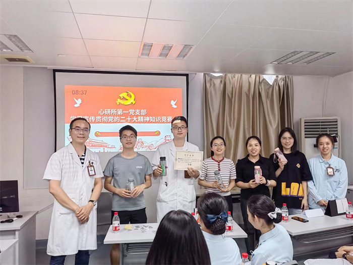 在中国共产党成立102周年之际,6月27日,心研所第一党支部举行“学思践悟二十大,砥砺奋进新征程”知识竞赛。支部全体职工党员、民主党派人士、入党积极分子及部分研究生党员、团员、“先锋党员+”立德树人结对子对象和群众代表参加。支部书记阳诺主持。