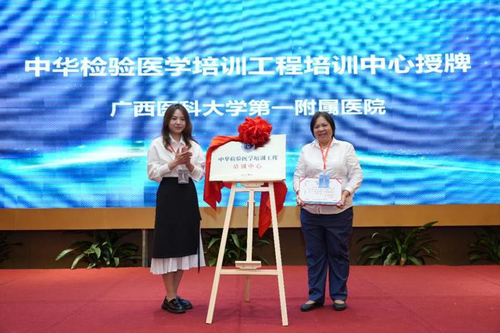 会上,中华医学会、中华医学电子音像出版社和中国初级卫生保健基金会联合发起“中华检验医学培训工程广西培训中心/培训基地授牌”仪式,我院荣获该项目广西唯一的培训中心。据了解,该中心作为“中华医学会医师培训工程”子项目于2019年启动,200余位国内检验领域学科带头人组成工程专家委员会,通过线上为主、线下为辅的教学形式,设置多层级课程,开展检验医学人才能力培训(在线学习平台及培训考核方案、线下专项培训、师资队伍、继续教育)及基础研究、临床转化、实验室标准化建设、学术交流等工作,推进该领域综合能力建设,加快基层检验人才培养,助力实现“健康中国2030目标”。