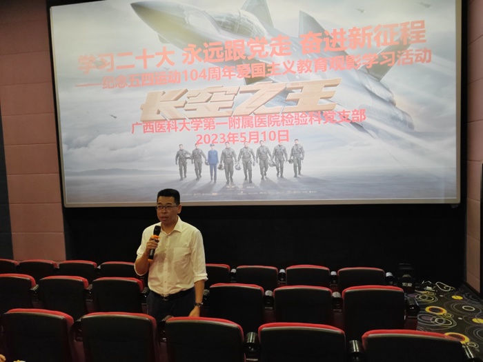 5月10日晚,我院检验科、临床检验诊断学研究生党支部带领团支部开展“学习二十大 永远跟党走 奋进新征程”——纪念五四运动104周年爱国主义教育主题观影活动,共同观看影片《长空之王》。支部党员、入党积极分子、团员青年、学生共43人参加。