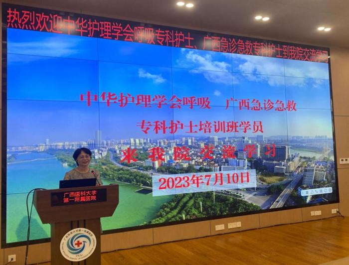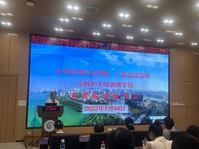 7月10日上午,我院启动中华护理学会呼吸专科护士京外临床实践教学培训班。护理部主任杨丽,副主任韦琴、曾国艳、凌瑛,大内科科护士长戴霞,呼吸专科护士基地负责人唐丽安,科室护士长、基地的带教老师及专科班全体学员参加,韦琴主持。