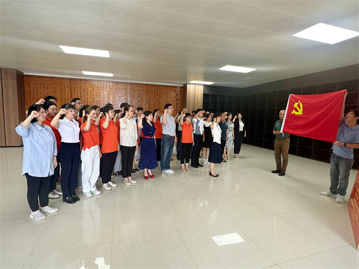 支部成员首先参观了南宁市树木园展厅,实地了解南宁树木园的发展历程及其对南宁市环境生态、经济发展的重要作用和贡献。在党建会议室,各党支部书记介绍了本支部情况,交流党建与业务融合发展、统一战线工作、民族团结进步等工作经验。“我志愿加入中国共产党,拥护党的纲领......”面向鲜红的党旗,全体党员同志举起右手,重温入党誓词,一句句掷地有声、铿锵有力的誓言久久回荡,映照党员初心使命。
