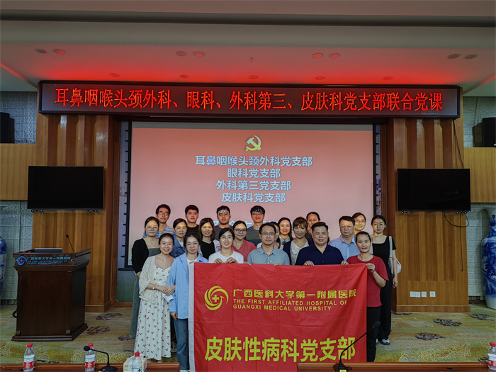 皮肤性病科党支部书记刘栋华发言,本次党课能有效发挥“三会一课”对党员的集中教育作用,为推进党建+业务深度融合、清廉支部和清廉科室建设提供思想指导,为新征程上医院高质量发展、建设新时代壮美广西汇聚智慧力量。