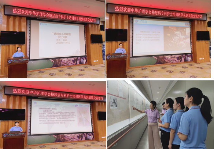 杨丽欢迎学员的到来并表示,本次培训是我院首期中华护理学会糖尿病专科护士临床实践,要求基地带教科室要紧密结合教学计划,高质量完成实践教学任务。韦琴介绍了医院及临床护理、护理教学、科研成果、专科辐射范围等护理学科发展情况,并解析临床实践管理要求和教学安排。学员依次进行自我介绍,对接下来4周临床实践的学习需求与期望进行沟通交流,纷纷表示将珍惜宝贵的学习机会,刻苦钻研,学有所获。