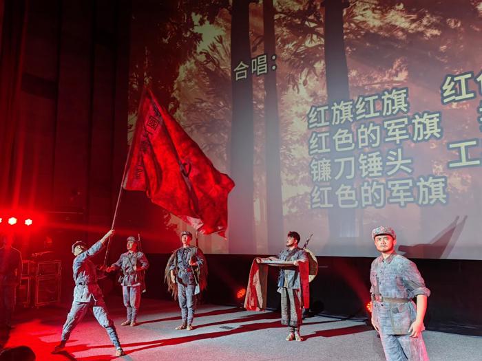 音乐剧兼有歌剧的庄重大气、话剧的严肃内敛、舞剧的激情飞扬等特点,运用现代舞美技巧,融合红色文化与舞台艺术。跌宕起伏的情节、激情澎湃的音乐……一段段激昂的唱词、磅礴旋律,唱进了每一位共产党员的心里。大家被剧情深深感染和打动,现场不时响起雷鸣般的掌声。