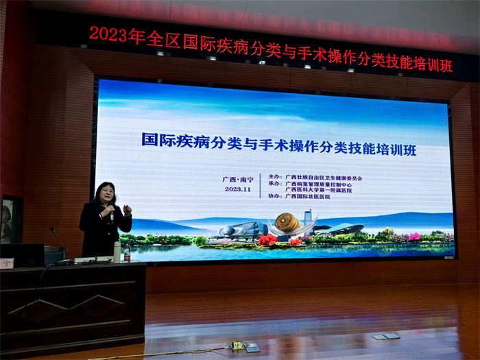 培训班邀请了我院病案信息管理科主任廖宁主任医师、邓添薪副主任技师、王君璇主管医师、虞丽霞主管技师,广西医科大学附属肿瘤医院病案科李新美、赵杰副主任技师,第二附属医院病案科主任吴韫宏,自治区人民医院病案科副主任甘晓健、周琴副主任医师、何治琛副主任技师等多名具有国家及全区国际疾病分类与手术操作分类培训师资的专家授课。