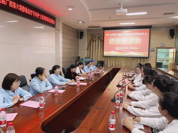 学员们踊跃发言,纷纷表示在我院基地的临床实践收获满满,在静脉治疗技术新进展、PICC置管与维护、静脉治疗专科护理门诊及MDT团队工作模式、静脉治疗护理敏感指标监控上有了新的认识,教案、综述写作以及授课能力也有质的飞跃;带教师资专业技术过硬、专科知识丰富,带教期间对学员无微不至的关怀让学员深深感动。学员们将把学到的专科知识、专业技能、科研思维带回工作岗位,为静脉治疗专科护理专业发展贡献自己的力量。