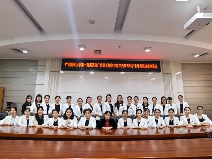 11月29日上午,我院在住院部裙楼二楼小学术厅举行广西第五期伤口造口失禁专科护士培训班临床实践教学结业典礼。护理部副主任韦琴、神经内科片区科护士长赵翠松、结直肠肛肠外科护士长韦瑞丽、烧伤整形外科(创面修复科)护士长汪永莲、创伤骨科手外科护士长王琦、基地带教老师及12名学员参加。韦瑞丽主持。