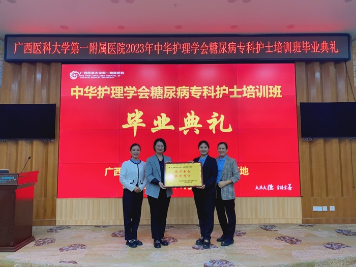 学员代表韦祖丽感谢基地老师们热情周到的关心和严谨细致的教学,表示在今后的工作中将汲取培训中的精华,将积累的知识和技能带回医院,使广大糖尿病患者获益。全体人员一起观看了中华护理学会组织的线上毕业典礼。