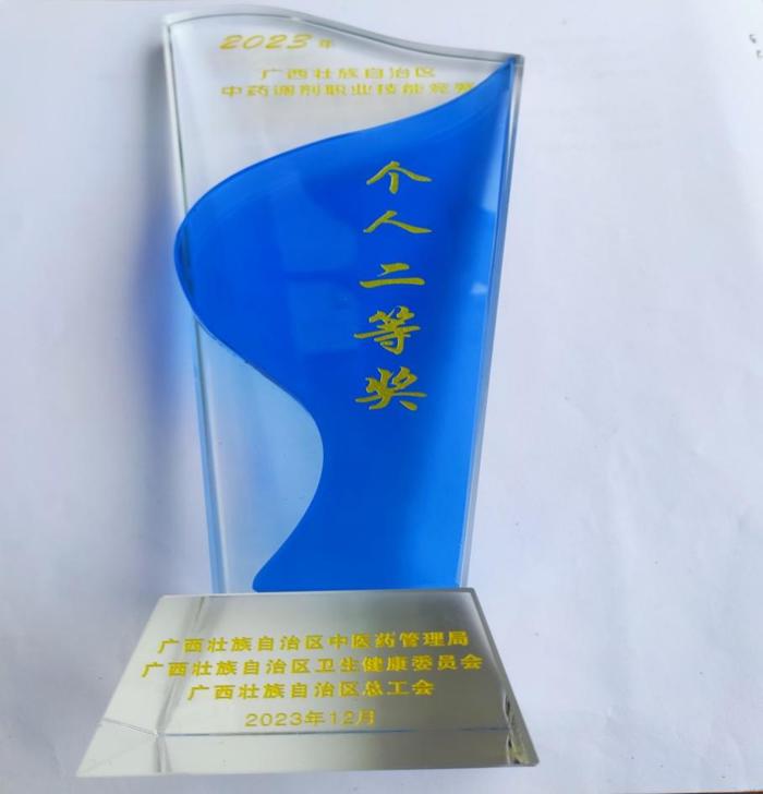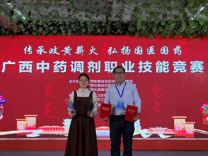 12月14日-15日,由自治区中医药局、自治区卫生健康委员会、自治区总工会主办,玉林市卫生健康委、玉林市总工会承办,广西中医药大学协办的广西中药调剂职业技能竞赛(决赛)在玉林市举办。我院药学部林叶婷表现优异,荣获个人总成绩二等奖。