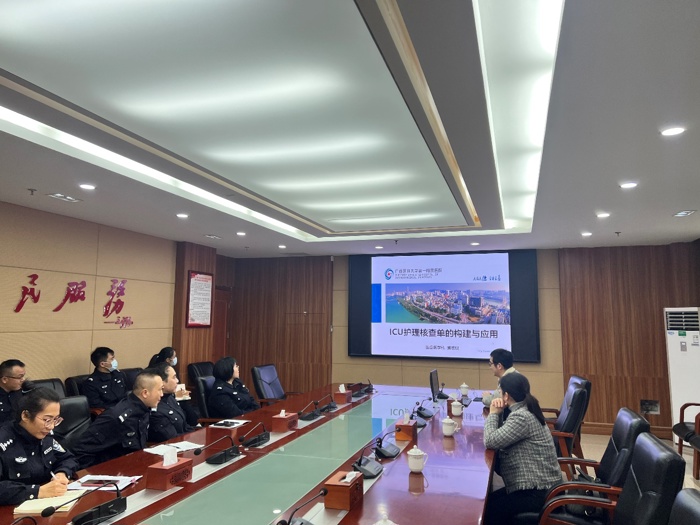 黄德斌作《ICU护理核查单的构建与应用》专题汇报,大家针对医疗护理工作中存在的焦点问题、医疗护理质量管理持续改进提升等开展业务交流。