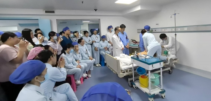 为进一步提升危急患者的抢救效率与气道安全保护能力水平,5月21日,我院护理部急诊急救小组联合气道管理小组开展了一场以“实战化、协作化、规范化”为目标的急救抢救配合演练培训。本次培训由护理部副主任韦琴指导,全院相关科室骨干共70余人参与。