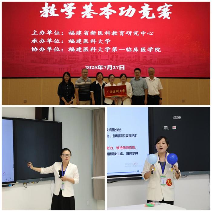 本次省际青年教师教学基本功竞赛由福建省新医科教育研究中心主办、福建医科大学承办,旨在搭建儿科青年教师教学展示平台,激发教学创新活力,提升课堂教学质量。比赛吸引了来自福建中医药大学、广西医科大学、贵州医科大学、遵义医科大学等11家兄弟院校的优秀青年教师同台竞技。我院儿科青年教师吴晓静和王润绮凭借扎实的专业功底、精心的教学设计、生动的课堂呈现和富有感染力的语言表达,在比赛中进行了精彩展示。最终,她们均荣获二等奖,充分展现了我院青年教师良好的精神风貌和不断提升的教学能力,赢得了评委和现场观摩教师的好评。
