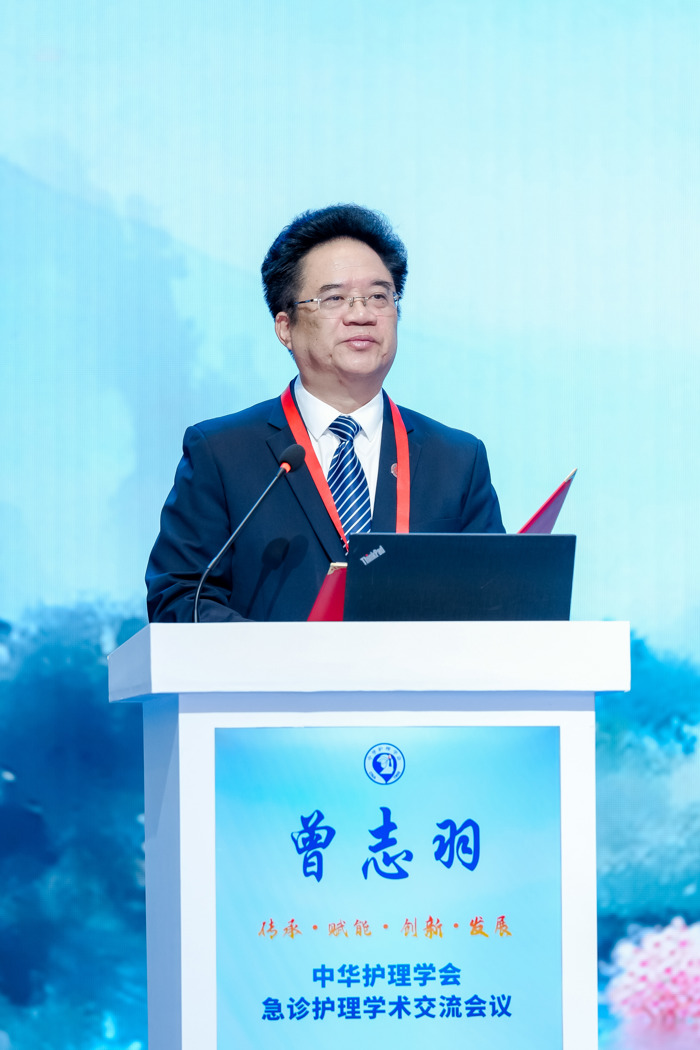 开幕式上,广西医科大学校长曾志羽致辞时强调,急诊护理是医疗卫生服务的重要前沿,学校将以本次高水平学术会议为契机,聚焦质量、人才与创新,强化学科内涵与校院协同育人,推动教研与临床融合,助推区域急诊护理高质量发展,主动服务国家“一带一路”倡议。我院护理部主任杨丽应邀出席开幕式。