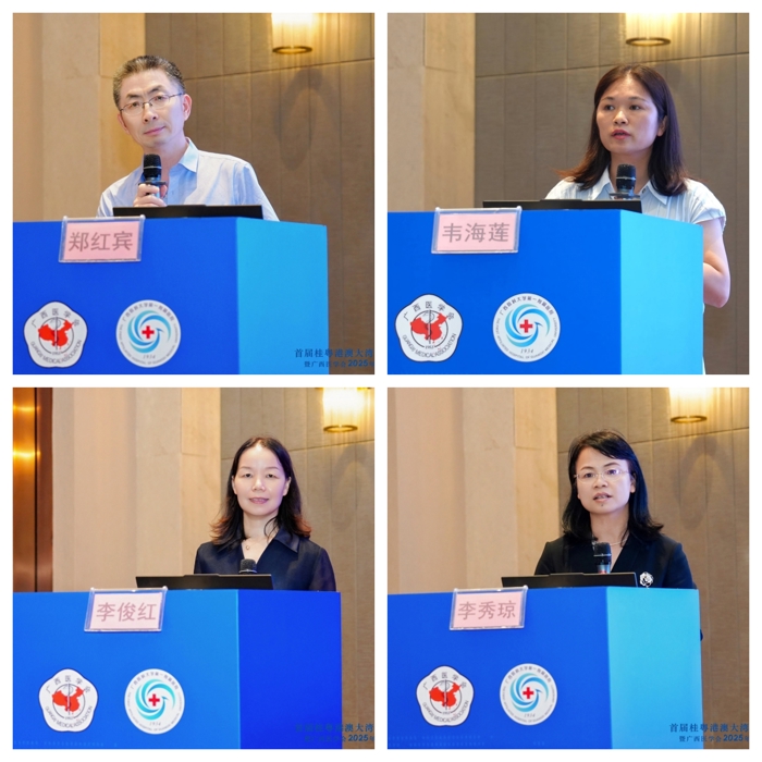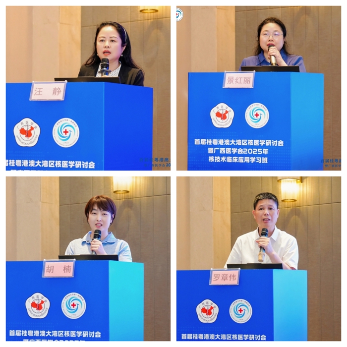 罗章伟(广西中医药大学第一附属医院核医学科主任)、郑红宾(右江民族医学院附属医院核医学科主任)以及我院核医学科韦海莲、李俊红、李秀琼分别作《SPECT/CT全身骨显像质量控制》《优质服务,质控铺路》《核素敷贴治疗出现放射性皮炎的治疗及护理质控》《核医学热点问题讨论与对策》《2025年全区核素治疗现场督查工作布置》报告。