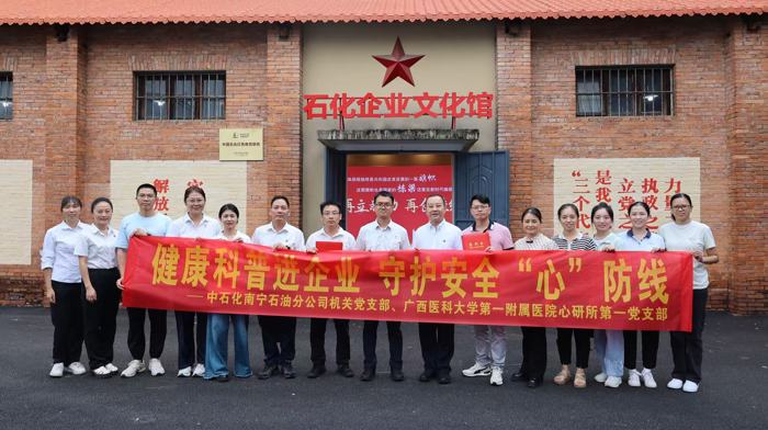 在第26个“世界心脏日”到来之际,9月29日下午,在支部书记、心胸外科主任阳诺带领下,我院心研所第一党支部与中石化南宁石油分公司业务部党支部签约共建,并开展“健康科普进企业,守护安全‘心’防线”主题党日活动,用专业医疗服务为群众筑起“心”防线。