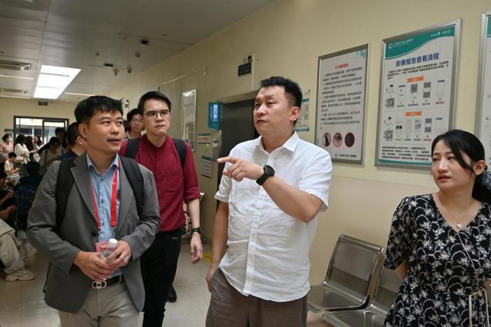 随后,专家团实地参观了我院放射学科及中国—东盟医疗保健合作中心(广西)。庞筱琪医生、唐成技师结合我院在地贫、鼻咽癌、肝癌、糖尿病等疾病的影像诊疗优势,详细介绍了先进影像设备的临床应用,展示了放射学科在专科诊疗能力建设方面取得的成果,获得了代表团的充分认可。