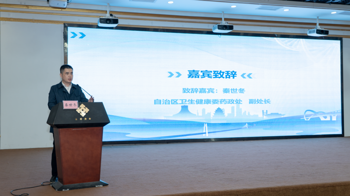 随后举行安全用药科普技能培训学习班,自治区卫生健康委药政处副处长秦世冬、广西医科大学第一附属医院总会计师丘雄江、广西药学会常务副理事长兼秘书长黄瑞松出席开班仪式并致辞。