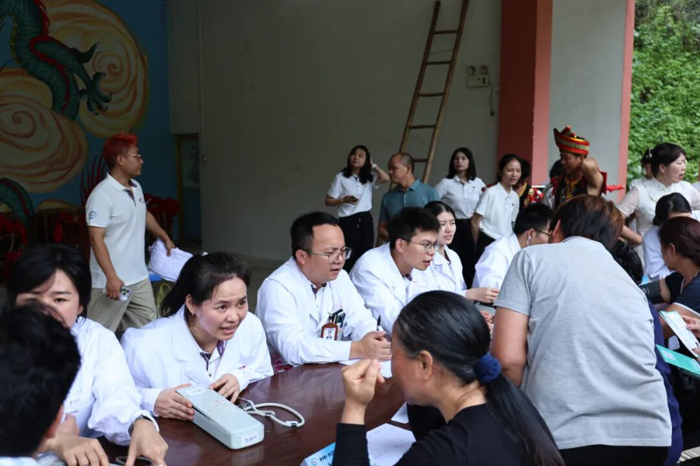 7月22日,“博士团”一行来到医院定点帮扶的马山县里当瑶族乡青龙村,与第一书记胡凯博士联合开展系列实践活动,通过座谈交流、文化交融、健康科普、爱心慰问等形式,深化民族团结,赋能乡村健康,将关怀与服务送到村民心坎上。