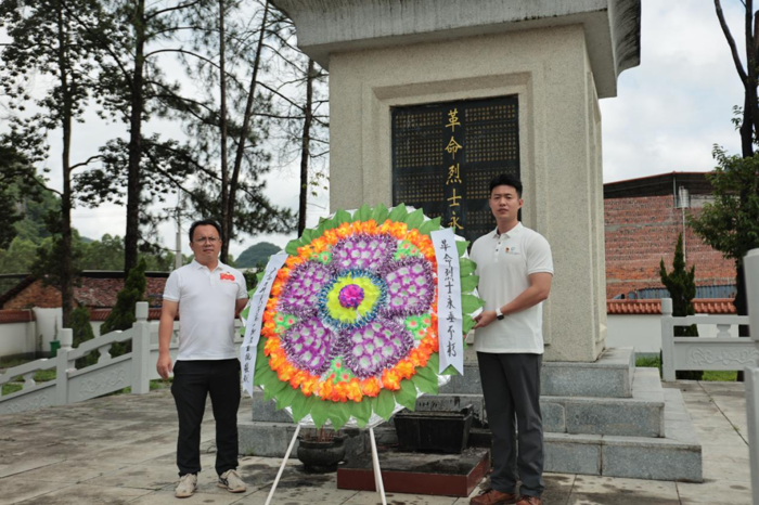在坡鉴烈士陵园,全体师生们向革命先烈敬献花篮,在庄严氛围中默哀并重温入党誓词。