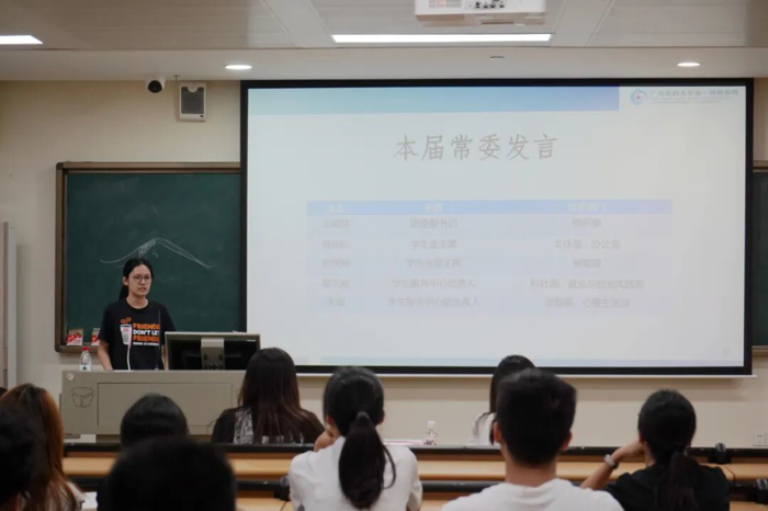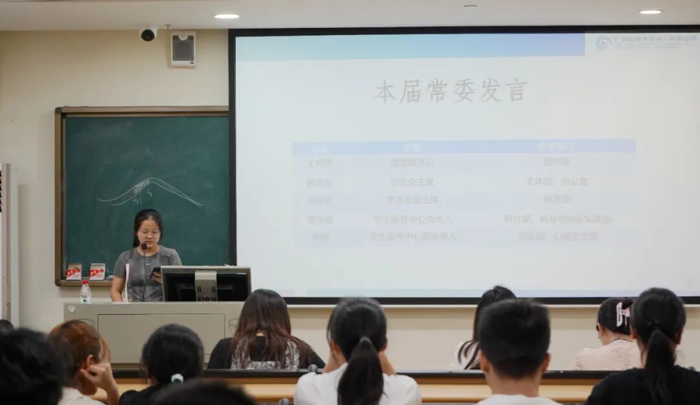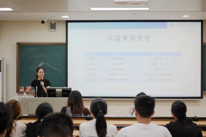 团委副书记王晓萍、学生会主席韩雨杉、学生会副主席陈映桦、学生服务中心负责人覃东妮、学生服务中心副负责人张璐依次发言。各位常委分别介绍了分管的工作内容,分享了从事学生工作以来的经验感悟与成长收获,为后续工作开展明确方向。